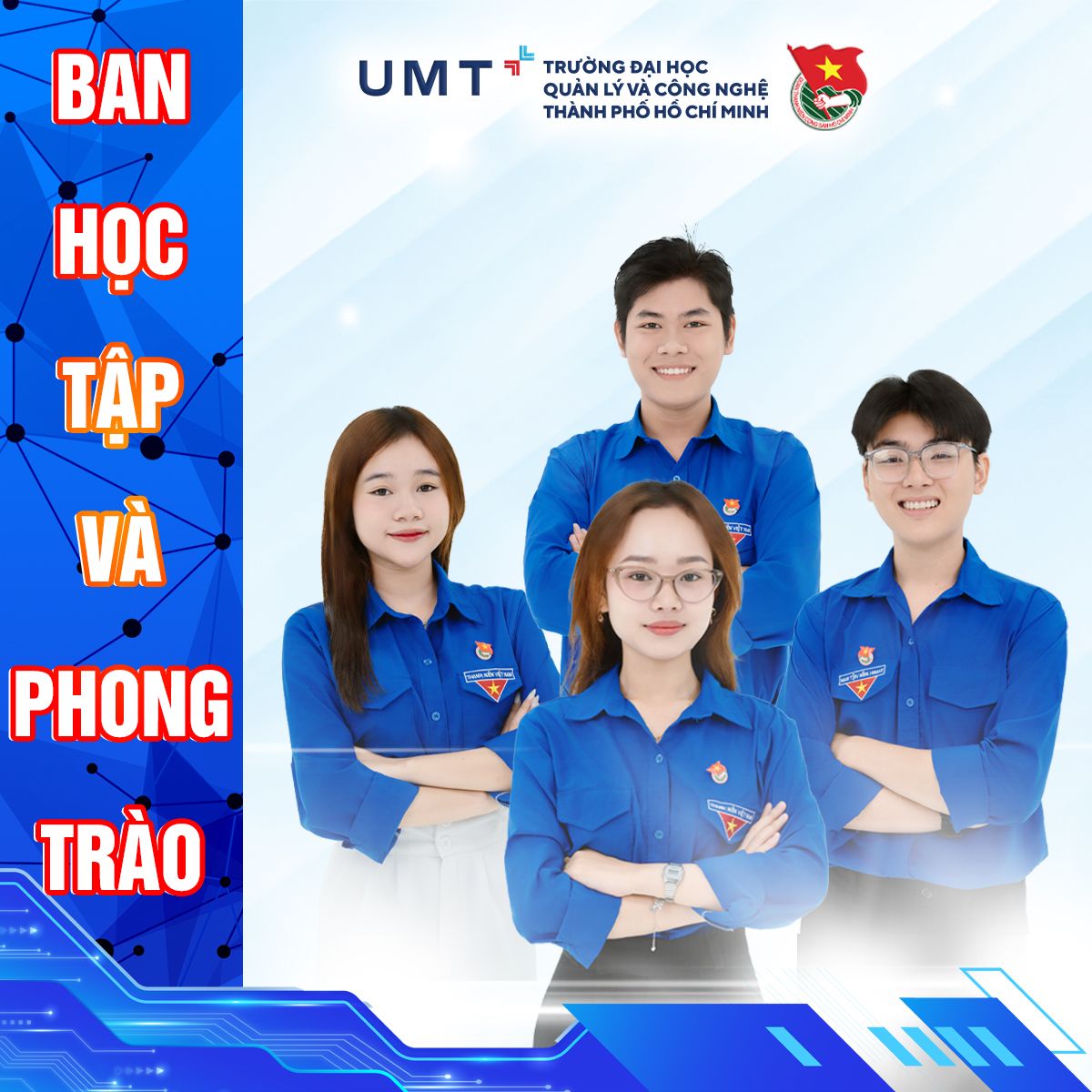 Đoàn Thanh niên Cộng sản Hồ Chí Minh là tổ chức chính trị - xã hội của thanh niên Việt Nam. Ngày 22/9/2025, Đoàn Thanh niên Cộng sản Hồ Chí Minh Trường Đại học Quản lý và Công nghệ Thành phố Hồ Chí Minh (Đoàn Trường UMT) chính thức thành lập. Về cơ cấu tổ chức, Đoàn Trường UMT gồm Ban Chấp hành Đoàn Trường và Chi đoàn các Khoa. Ban Chấp hành Đoàn Trường gồm 11 đồng chí, trong đó có 1 đồng chí Bí thư, 1 đồng chí Phó Bí thư, 1 đồng chí Ủy viên Ban Thường vụ và 8 đồng chí Ủy viên Ban Chấp hành. Về phân công công tác, Ban Chấp hành Đoàn Trường phân ban công tác thành 3 ban như sau: Ban Tổ chức - Kiểm tra, Ban Tuyên giáo - Quốc tế và Ban Học tập - Phong trào.