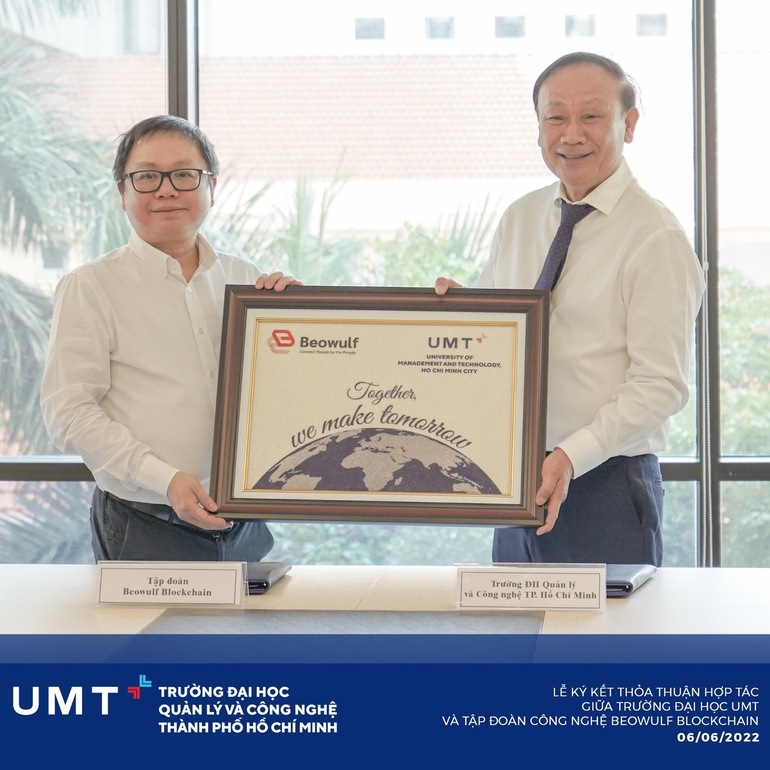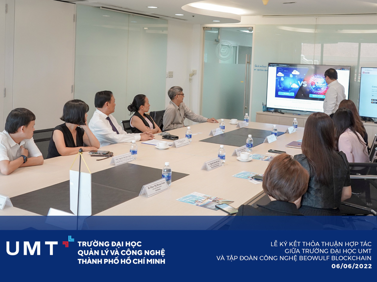 Ngày 6/6/2022 vừa qua, tại Tầng 3, Tòa nhà Harbour View Tower, 35 Nguyễn Huệ, Phường Bến Nghé, Quận 1, TP.HCM, đã chính thức diễn ra Lễ Ký kết thỏa thuận hợp tác giữa Trường Đại học Quản lý và Công nghệ TP.HCM (UMT) và Công ty TNHH Beowulf Việt Nam thuộc Tập đoàn Công nghệ Beowulf Blockchain.