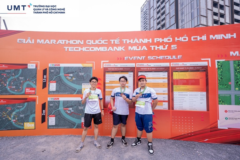 Sáng ngày 11/12/2022, Giải Marathon Quốc tế TP.HCM Techcombank mùa thứ 5 năm 2022 đã diễn ra và có sự tham gia của toàn thể sinh viên Trường Đại học UMT. Các UMTers đã hoàn thành xuất sắc cự ly 5 km, thành tích này là bước khởi đầu và cũng là động lực cho tất cả UMTers đến với lối sống năng động và lành mạnh.