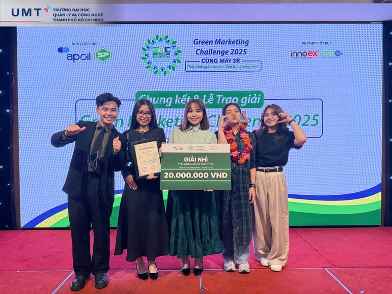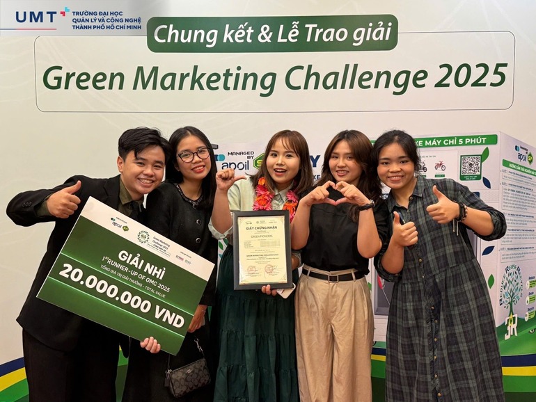 Vượt qua hàng trăm đội thi trên toàn quốc, Green Pioneers đến từ Trường Đại học Quản lý và Công nghệ TP.HCM (UMT) đã xuất sắc giành giải Nhì chung cuộc tại cuộc thi Green Marketing Challenge 2025 – sân chơi học thuật hàng đầu về Marketing bền vững do AP SAIGON PETRO tổ chức cùng các đơn vị chuyên môn.