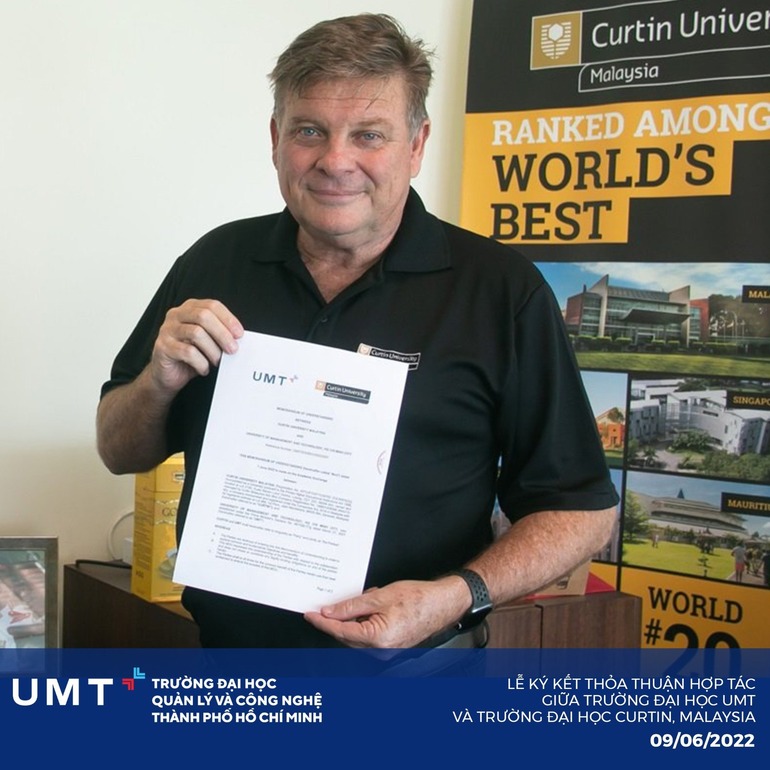 Ngày 9/6/2022, Trường Đại học Quản lý và Công nghệ TP.HCM (UMT) đã ký kết cùng Trường Đại học Curtin (Malaysia). Đây là một trong những hoạt động thường xuyên của UMT với mục tiêu xây dựng và phát triển các nguồn lực liên kết, phục vụ cho hoạt động nghiên cứu, giảng dạy, học tập.