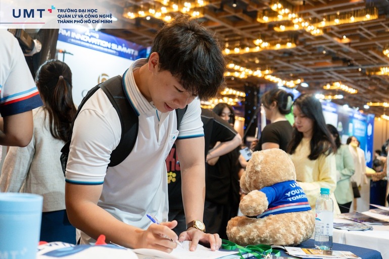 Bên cạnh đó, sinh viên UMT cũng hào hứng đăng ký trở thành cộng tác viên của sự kiện và tham gia để học hỏi, lắng nghe kiến thức cùng kinh nghiệm quý báu của diễn giả tại các chuyên đề, phiên thảo luận mang đậm tính xu hướng như: “Sản xuất bền vững và Tài chính xanh trong chu kỳ kinh tế mới”, “Tương lai của Tài chính số: Blockchain, AI và Hệ sinh thái trung tâm tài chính quốc tế”,"Khơi thông nguồn lực tư nhân – Kiến tạo tài chính cho nền kinh tế đổi mới", "Thập kỷ số của Việt Nam – Hành trình vươn mình thành trung tâm kinh tế số của khu vực”, "Hợp lực công – tư và tài chính tương lai: Kinh nghiệm từ Vương quốc Anh trong kiến tạo hệ sinh thái tài chính cho đổi mới sáng tạo"...