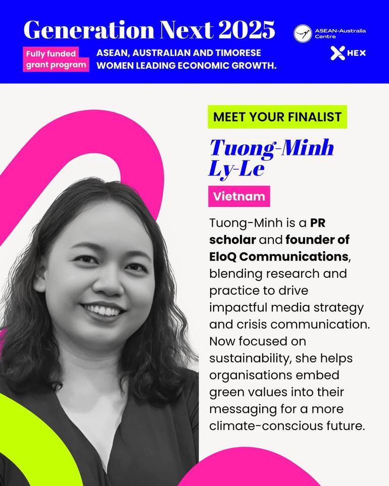Generation Next 2025 được triển khai bởi Hacker Exchange (HEX) và ASEAN-Australia Centre (AAC) - một tổ chức của Úc nhằm thúc đẩy kết nối giữa Úc, các quốc gia ASEAN và Đông Timor trong lĩnh vực kinh tế, giáo dục, văn hóa. Mục tiêu chính là hỗ trợ các nữ doanh nhân, khởi nghiệp ở giai đoạn đầu phát triển doanh nghiệp ra thị trường toàn cầu, với trọng tâm là: công nghệ, khí hậu và phát triển bền vững.