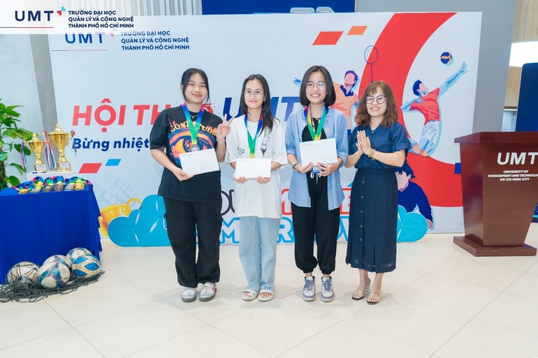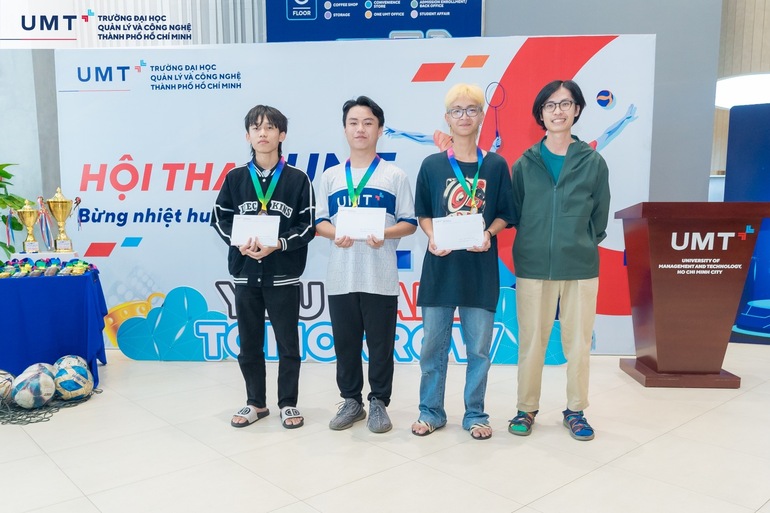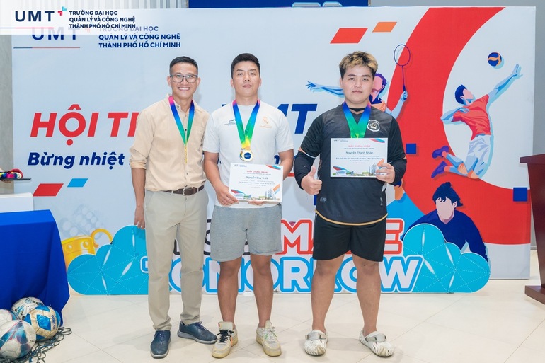 Trong Lễ bế mạc, Ban Tổ chức đã trao tặng huy chương Vàng, Bạc, Đồng cho cá nhân, tập thể đạt thành tích cao ở các nội dung thi đấu. Cùng điểm lại những tập thể và cá nhân xuất sắc đã thi đấu hết mình và đạt được thành tích cao tại Hội thao Sinh viên UMT lần 1 - Năm 2024 vừa qua:
