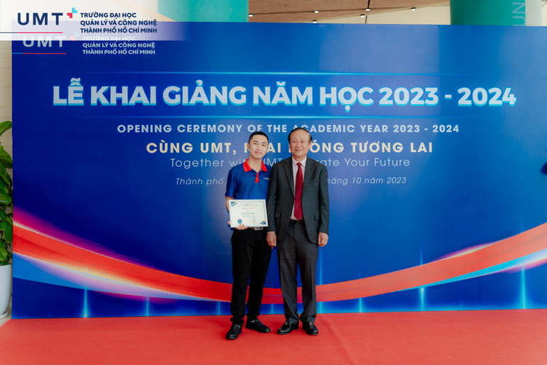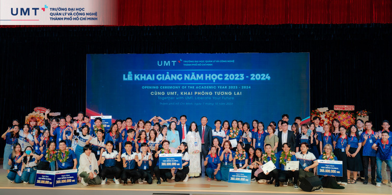 Tại Lễ Khai giảng năm học mới 2023 – 2024, Trường Đại học UMT và các đơn vị đối tác chiến lược của Trường đã trao nhiều suất học bổng dành cho sinh viên với tổng trị giá hơn 22 tỷ đồng và tuyên dương 3 sinh viên tiêu biểu Khóa 1.