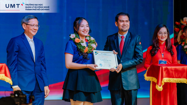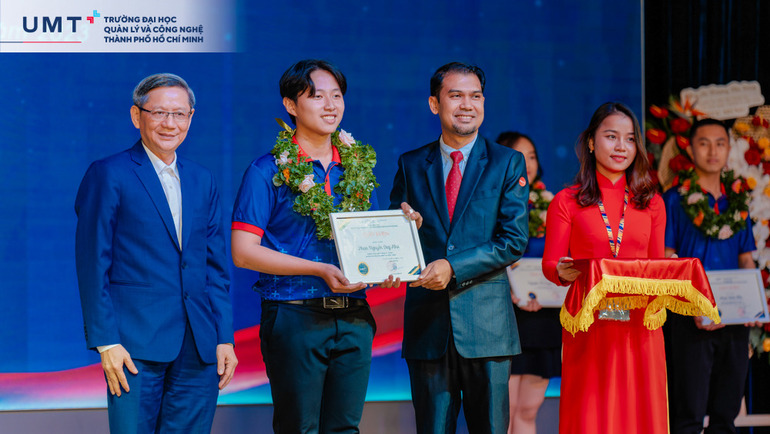 Cũng tại Lễ Khai giảng, Trường Đại học UMT vinh danh và khen thưởng 3 bạn sinh viên tiên phong của Khóa 1 với những thành tích xuất sắc: