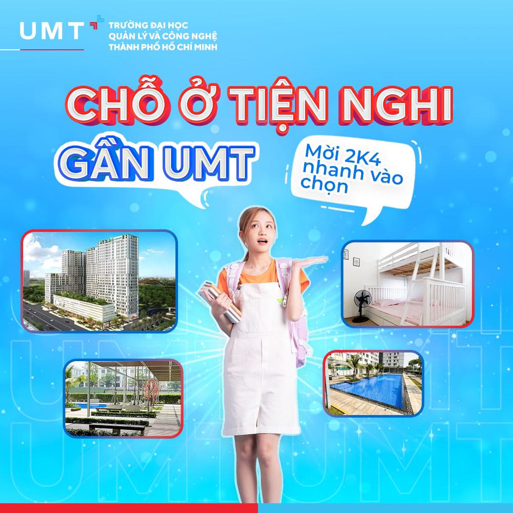 Chỗ ở của sinh viên UMT thuộc khu căn hộ cao cấp CitiSoho do tập đoàn Kiến Á làm chủ đầu tư và phát triển thuộc khu đô thị Cát Lái, quận 2, thành phố Thủ Đức, TP.HCM, cách trụ sở chính của UMT khoảng 5 phút đi xe và đến quận 1, quận Bình Thạnh chỉ 10 – 15 phút.