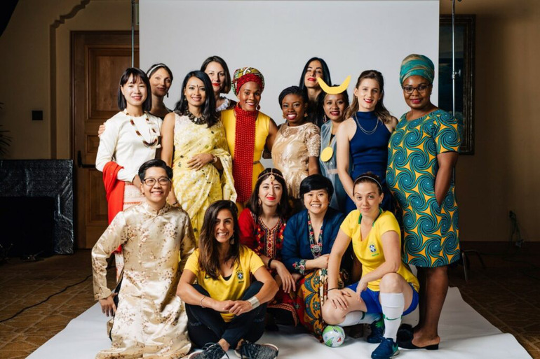 TS. Jane Nguyễn (áo dài vàng) cùng các Nhà sáng lập đến từ 15 nước khác nhau trong các Dự án Trao quyền Phụ nữ trong thể thao của Bộ ngoại giao Hoa Kỳ tại Washinton DC năm 2018.