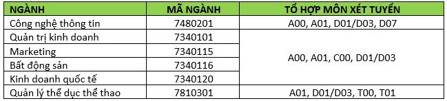 Danh sách ngành, mã ngành, tổ hợp môn UMT xét tuyển: