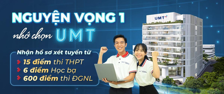 Mức điểm sàn xét tuyển dự kiến cho các ngành của Trường đại học UMT là 15 điểm thi THPT. Với các phương thức khác như xét kết quả THPT (học bạ) từ 6 điểm, xét kết quả kỳ thi ĐGNL của ĐHQG TP.HCM từ 600 điểm, xét tuyển thẳng theo quy định của UMT và Bộ GD&ĐT.