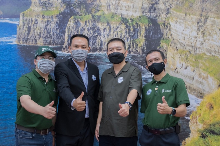 Anh Nguyễn Yên Phúc – Điều phối viên FOI; Anh Bùi Phan Khánh – TT DVSV UMT; Anh Phan Đăng Cường – Cố vấn cấp cao, Đại sứ quán Ireland; Anh Phạm Trường Sơn – Ban cố vấn FOI (từ trái qua) chụp hình lưu niệm tại Ireland Day 2022