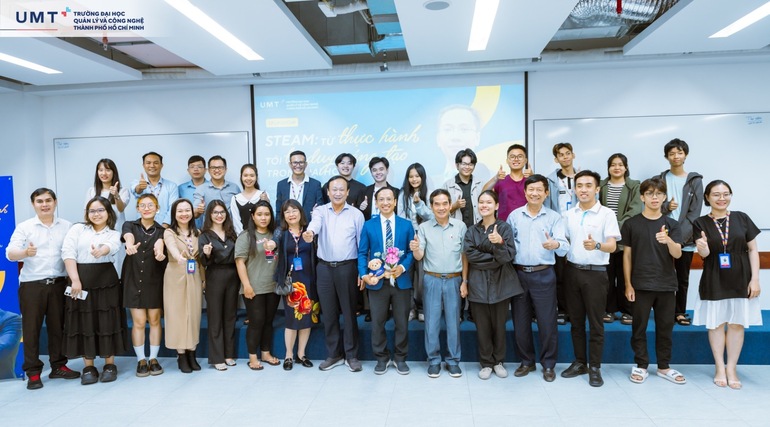 STEAM là một trong những phương pháp giáo dục tiên tiến nhất hiện nay được áp dụng tại nhiều quốc gia phát triển như: Mỹ, Pháp, Nhật… Do đó, Diễn giả Nguyễn Thanh Hải được đích thân TS. Huỳnh Bá Lân - Chủ tịch Hội đồng Trường, Hiệu trưởng UMT, mời về chia sẻ cùng UMTers.