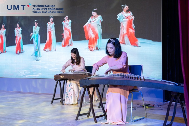 Tiết mục Đàn Cổ tranh là món quà vô cùng đặc biệt đến từ Văn phòng ONE UMT Hub dành tặng Toàn trường.