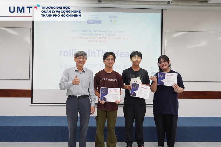 Thành công của kỳ thi chính là minh chứng cho nỗ lực không ngừng của UMT trong việc xây dựng một môi trường học tập năng động, sáng tạo, giúp sinh viên phát huy tối đa tiềm năng của mình. Trân trọng chúc mừng tất cả thí sinh và đội nhóm đã xuất sắc vượt qua thử thách, hy vọng những thành công này sẽ là động lực để các bạn tiếp tục vươn xa hơn trên con đường học tập và phát triển trong lĩnh vực Công nghệ thông tin.