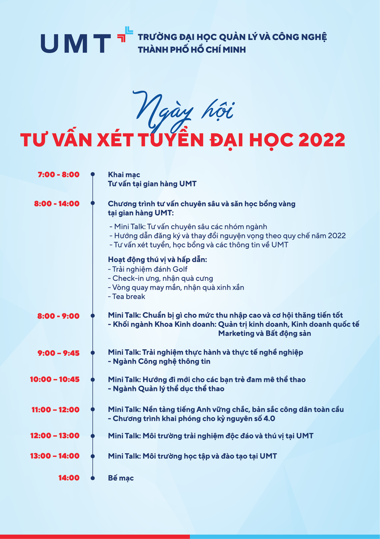 Để UMT “bật mí cho mà nghe”: Ngoài các hoạt động chính về tư vấn xét tuyển năm 2022, UMT còn chuẩn bị 4 tiết mục “cực chill” dành cho các bạn đến với Ngày hội luôn nha: