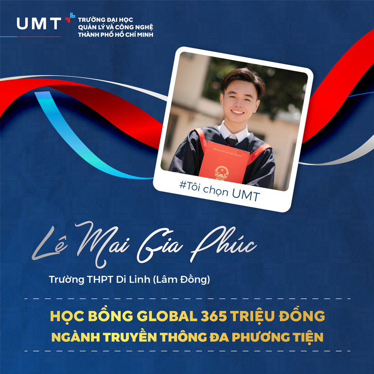 UMT vô cùng tự hào khi được chào đón và giới thiệu “một mảnh ghép” tiếp theo của thế hệ sinh viên tiên phong ngành Truyền thông đa phương tiện Khóa 2023. Chúc Gia Phúc ngày càng tự tin và có nhiều trải nghiệm đáng nhớ tại giảng đường đại học và hy vọng những ước mơ, hoài bão của bạn sẽ luôn là “ánh mặt trời” để hành trình phía trước mãi rực rỡ!