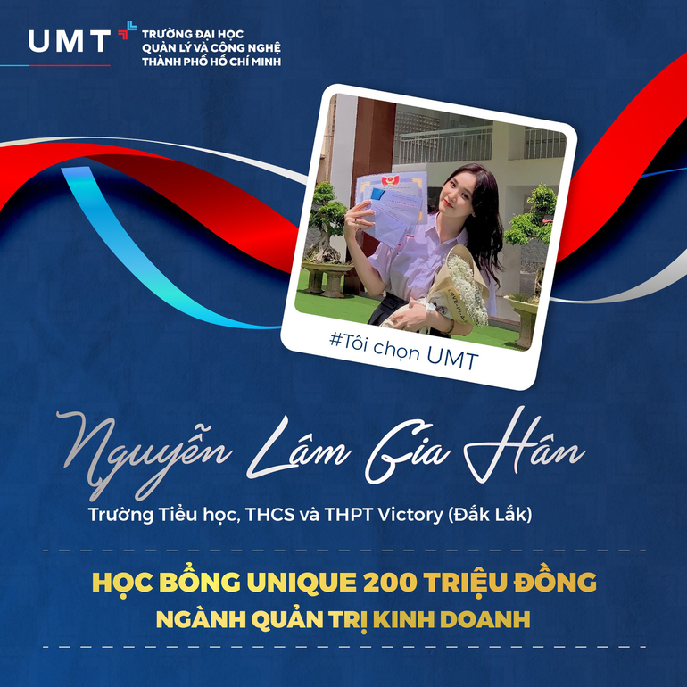 Cộng đồng UMTers vui mừng chào đón Gia Hân đến với giảng đường UMT và sẽ trở thành thế hệ sinh viên tài năng tiếp theo cùng tạo nên những giá trị tốt đẹp cho cộng đồng và xã hội. Chúc Gia Hân sẽ tiếp tục tỏa sáng bằng tài năng và kiến thức của mình!
