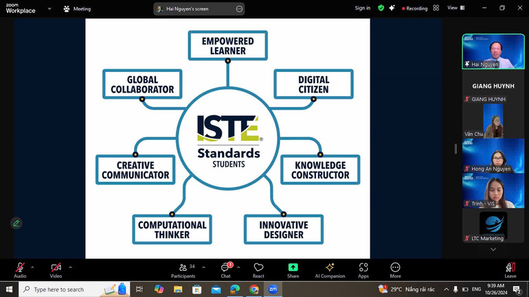 Bên cạnh đó, Thầy còn giới thiệu về ISTE – một hệ thống tiêu chuẩn quốc tế dành cho học sinh trong thời đại kỹ thuật số. Những tiêu chuẩn này bao gồm vai trò Học sinh chủ động (Empowered Learner), Công dân kỹ thuật số (Digital Citizen), Cộng tác viên toàn cầu (Global Collaborator), cùng nhiều thông tin quan trọng khác nhằm trang bị cho học sinh kỹ năng cần thiết để thành công trong môi trường công nghệ hiện đại. Hệ thống ISTE không chỉ cung cấp hướng dẫn cụ thể về việc ứng dụng công nghệ trong học tập mà còn giúp giáo viên và học sinh xây dựng kỹ năng mềm, tạo nền tảng vững chắc cho sự phát triển toàn diện trong tương lai.