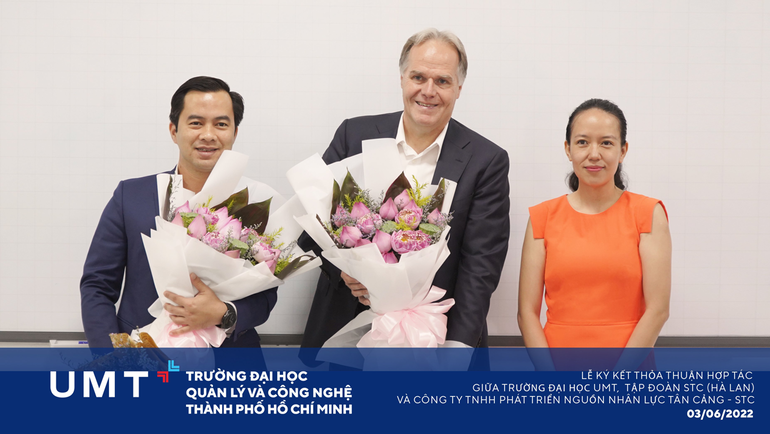 Với mục tiêu xây dựng nguồn lực phục vụ cho các hoạt động nghiên cứu, tăng cường năng lực cho đội ngũ cán bộ, giảng viên và nghiên cứu viên, mở rộng mạng lưới các tổ chức, doanh nghiệp phục vụ nhu cầu đào tạo… Trường Đại học Quản lý và Công nghệ TP.HCM (UMT) đã chính thức ký kết cùng Tập đoàn STC (Hà Lan) và Công ty TNHH Phát triển Nguồn nhân lực Tân Cảng – STC vào sáng ngày 3/6/2022 tại Khu cảng Cát Lái, Số 1295b đường Nguyễn Thị Định, Phường Cát Lái, TP. Thủ Đức, TP.HCM.