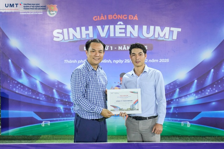 Khép lại 14 trận đấu đầy gay cấn của 9 đội bóng Nam – Nữ, Lễ Bế mạc Giải Bóng đá Sinh viên UMT lần 1 được tổ chức trong không khí trang trọng và giàu cảm xúc, với sự tham dự của Ban Giám hiệu Nhà trường, đại diện nhà tài trợ Rehub, quý Thầy Cô các phòng, khoa cùng đông đảo sinh viên UMT. Chương trình mở đầu bằng các tiết mục văn nghệ sôi động, tiếp nối là phần tri ân đội ngũ trọng tài và nhà tài trợ, những người đã đồng hành, góp phần tạo nên một mùa giải công bằng, chuyên nghiệp và đầy cảm hứng.