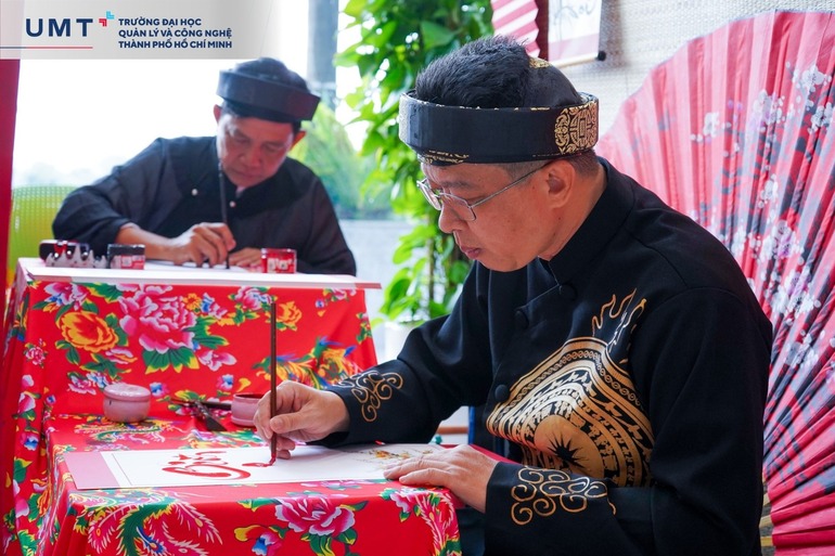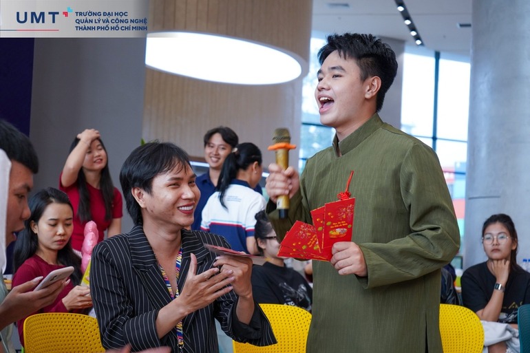 Không khí Hội Xuân thêm phần nhộn nhịp với các trò chơi dân gian như nhảy sạp, bầu cua, phóng phi tiêu, mang lại những phút giây thư giãn đầy ắp tiếng cười và gắn kết. Khu vực Ông đồ cho chữ cũng thu hút đông đảo người tham gia, nơi những chữ thư pháp ý nghĩa như “Phúc”, “Lộc”, “An”, “Khang” được trao tặng, lan tỏa nét đẹp văn hóa ngày Tết. Các tiết mục văn nghệ đặc sắc đậm chất sinh viên UMT, từ những giai điệu sâu lắng đến tiết tấu sôi động, mỗi màn trình diễn đều thổi bùng không khí lễ hội. Kết thúc chương trình là hoạt động bốc thăm may mắn, mang đến nhiều phần quà hấp dẫn và khép lại Hội Xuân trong sự phấn khích cùng niềm vui trọn vẹn.