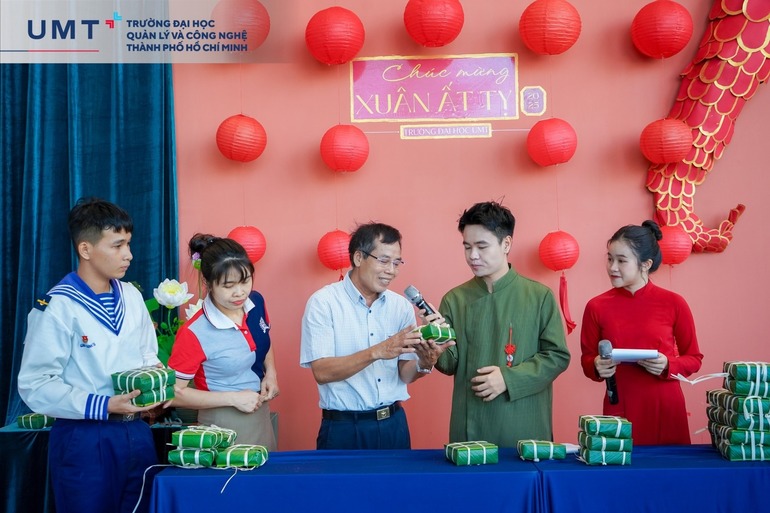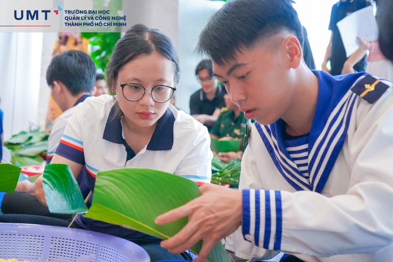 Một hoạt động không thể thiếu tại Hội Xuân UMT chính là gói bánh chưng xanh – biểu tượng cho sự đủ đầy, hạnh phúc của Tết cổ truyền. Dưới sự hướng dẫn của nghệ nhân Nguyễn Văn Tâm, giảng viên và sinh viên đã cùng nhau gói nên những chiếc bánh vuông vức, gửi gắm sự sẻ chia và hy vọng vào một năm mới an khang, thịnh vượng.