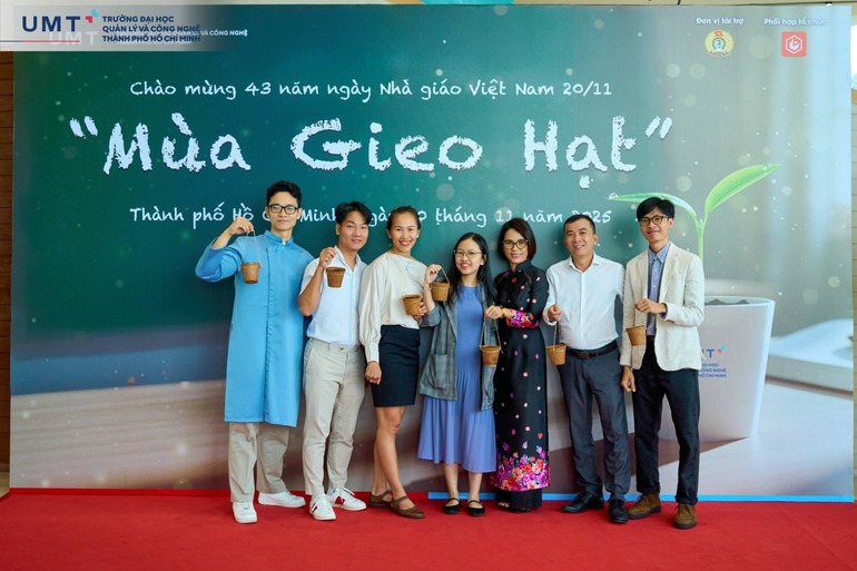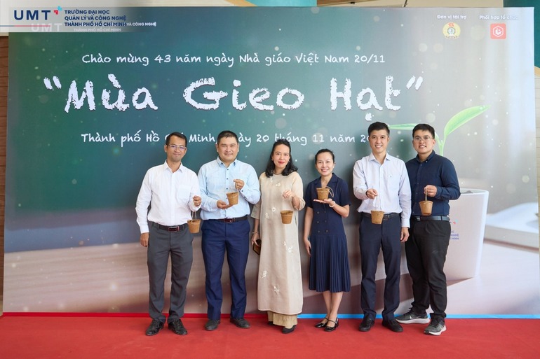 Từ sáng sớm, đội ngũ GVNV UMT đã vô cùng bất ngờ với những phần quà nhỏ, tượng trưng cho hạt giống tri thức, thay cho lời cảm ơn chân thành dành cho những người miệt mài gieo mầm yêu thương và kiến thức tại UMT. Photobooth “Mùa gieo hạt” và Quà tặng “Gieo mầm tri thức” do chính tay các bạn sinh viên chuẩn bị đã trở thành một vườn kỷ niệm rực rỡ giữa Thầy Cô và sinh viên trong dịp 43 năm kỷ niệm Ngày Nhà giáo Việt Nam.