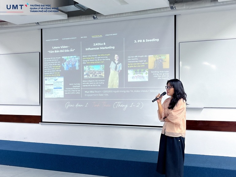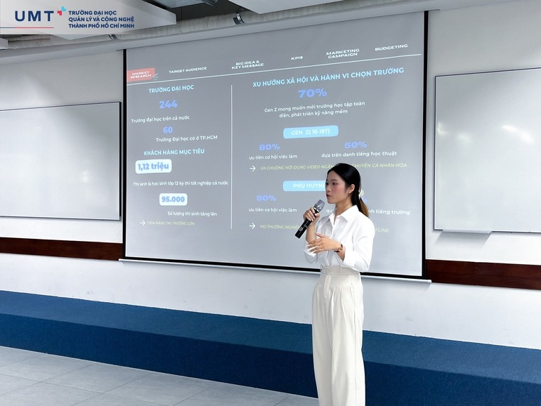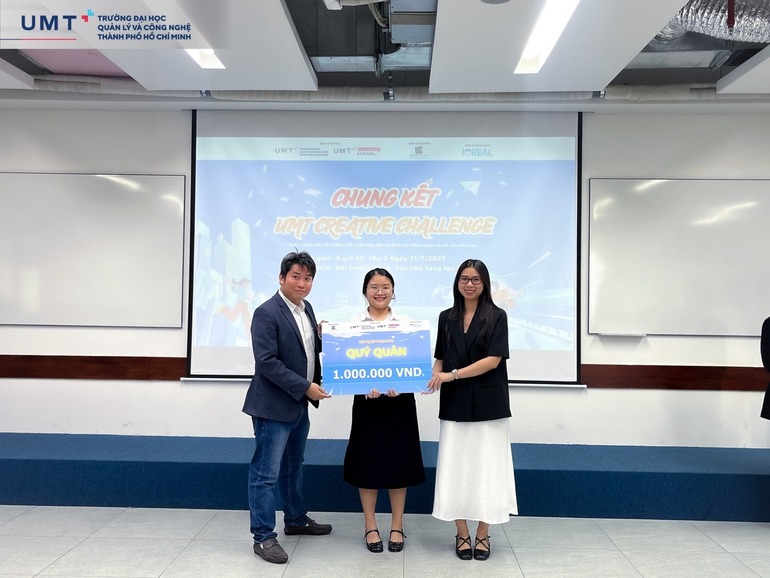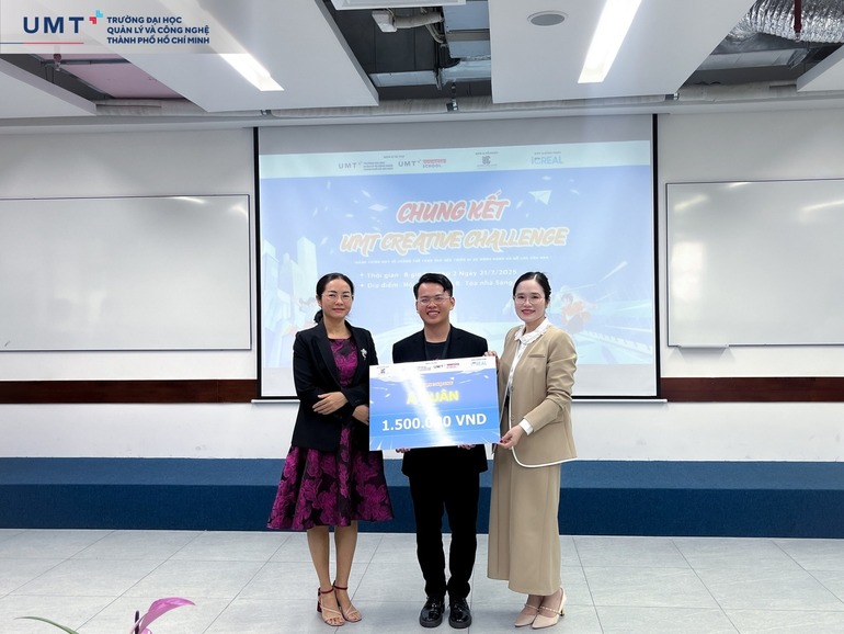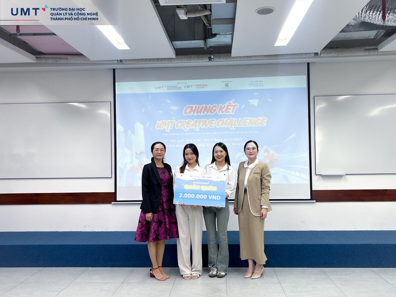 Vòng Chung kết cuộc thi UMT Creative Challenge 2025 do Khoa Kinh doanh Trường Đại học Quản lý và Công nghệ TP.HCM (UMT) tổ chức đã diễn ra sôi nổi, chính thức khép lại hành trình gần hai tháng tranh tài của các Sinh viên với nhiều dấu ấn sáng tạo và chuyên môn.