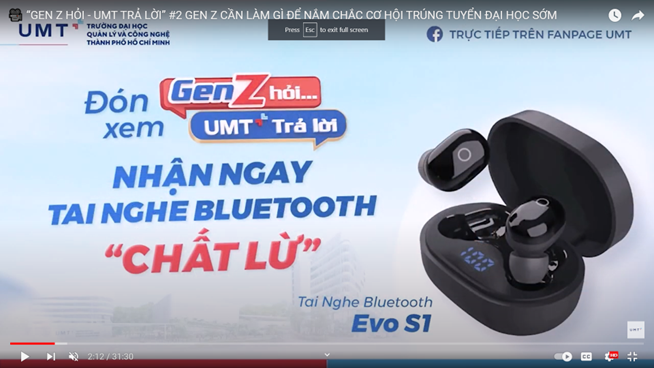 Các bạn có thể vào link xem chi tiết toàn bộ chương trình livestream số 2 tại kênh Youtube UMT.