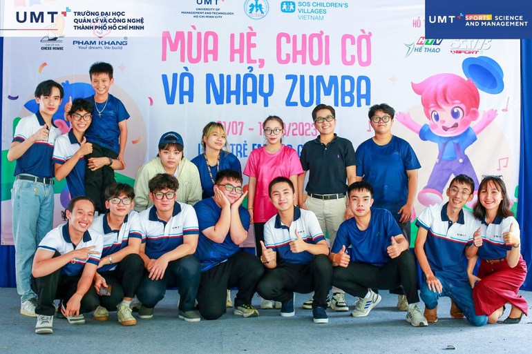 Đội hình sinh viên tình nguyện UMT tại Chương trình "Mùa hè, chơi Cờ và nhảy Zumba” tại Làng trẻ em SOS Gò Vấp (TP.HCM) năm 2023.