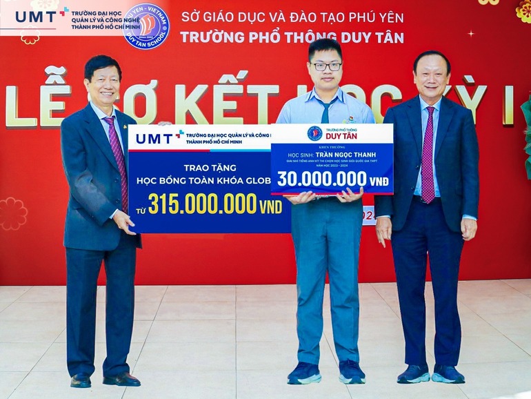 Trước đó, Trường Đại học UMT cũng đã trao học bổng Global trị giá 315 triệu đồng cho em Trần Ngọc Thanh, học sinh lớp 12QT3A, Trường Phổ thông Duy Tân (Phú Yên)