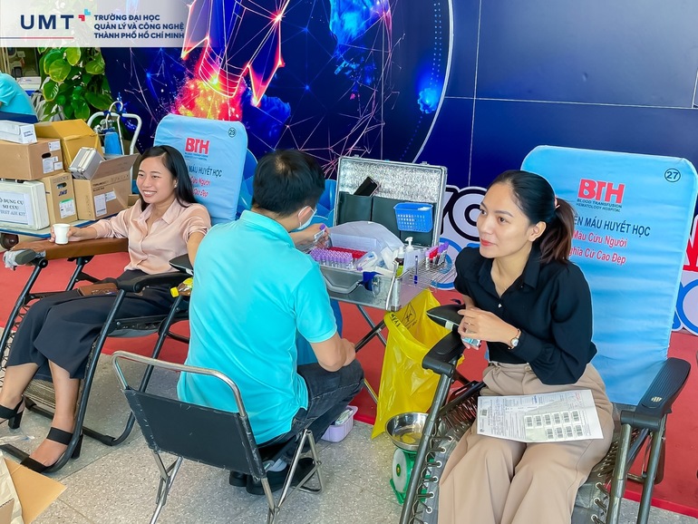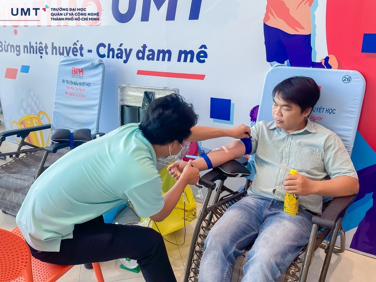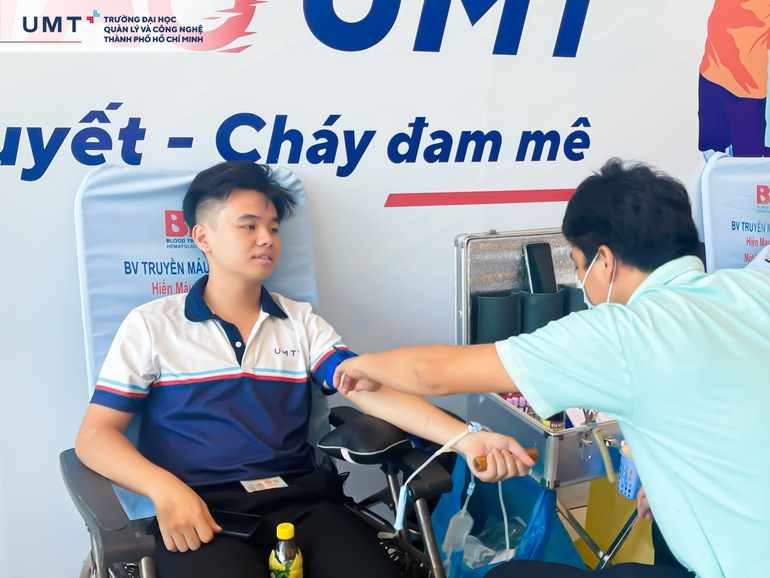 Với tinh thần "Một giọt máu - Ngàn niềm hy vọng", UMTers đã nhiệt tình tham gia hiến máu nhân đạo. Mỗi người tham gia đều được nhân viên y tế kiểm tra sức khỏe kỹ lưỡng, đảm bảo tuân thủ quy trình. Sau khi hiến máu, các bạn được tặng bánh, sữa và hướng dẫn thực hiện chế độ dinh dưỡng theo quy định.
