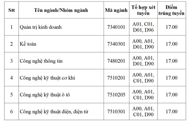 Điểm trúng tuyển vào các ngành nêu trên dành cho thí sinh thuộc khu vực 3.