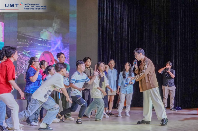 Với kinh nghiệm “đa-zi-năng” của mình từ giảng viên đại học, MC song ngữ, đi hơn 40 quốc gia và lãnh thổ; đến nhà sáng tạo nội dung với con số hơn 5,2 triệu followers trên nền tảng mạng xã hội TikTok, Thầy Beo đã mang “lửa” đến Hội trường UMT bằng một mini game đầy tiếng cười không ngớt với nhiều Trend cực hot hiện nay. Nhiều UMTers năng động đã nhận được quà tặng là những chiếc card bo góc BLACKPINK do chính Thầy Beo “handmade”, quả là một người Thầy tâm lý của Gen Z.