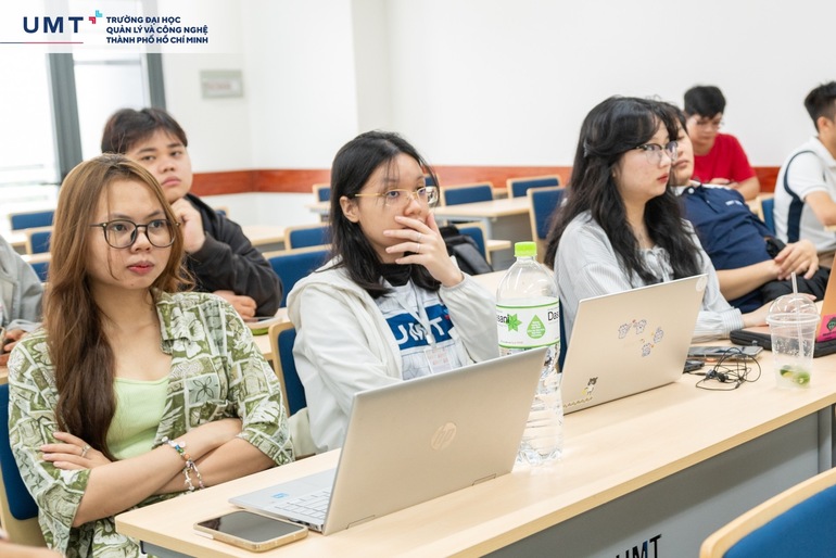Hơn nữa, GS. Nguyễn Văn Phú còn giới thiệu giấy phép về Quyền gây ô nhiễm được đề xuất bởi Ronald Coase, minh họa cách doanh nghiệp có thể mua bán quyền gây ô nhiễm để đạt được sự cân bằng tối ưu trên thị trường. Từ những kiến thức cơ bản này, sinh viên UMT đã được trang bị cái nhìn toàn diện về cách các chính sách có thể tác động đến hành vi kinh tế và bảo vệ môi trường.
