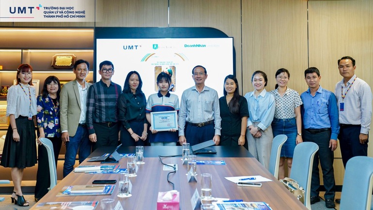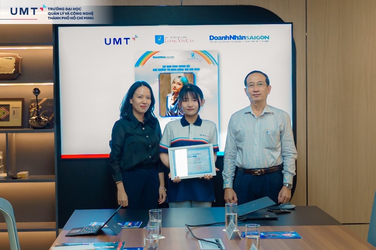 Chiều ngày 6/12/2023, đại diện Ban Lãnh đạo Tạp chí Doanh nhân Sài Gòn và Ban Tổ chức Giải thưởng Tài năng Lương Văn Can đã đến thăm và làm việc tại Trường Đại học UMT, đồng thời trao chứng nhận vào Vòng Chung kết đến Huỳnh Như Ý - Sinh viên năm 2, ngành Kinh doanh quốc tế UMT.