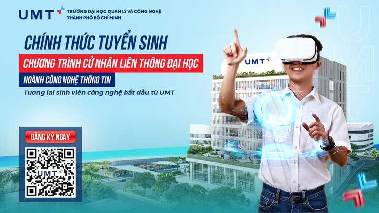 Hội đồng Tuyển sinh Trường Đại học Quản lý và Công nghệ TP.HCM (UMT) chính thức thông báo về việc tuyển sinh đào tạo chương trình cử nhân liên thông Đại học hệ chính quy tập trung năm 2025 đối với ngành Công nghệ thông tin.