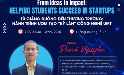 Bạn đã sẵn sàng biến ý tưởng của mình thành một startup thực sự? Ngày 29/9/2025, Trường Đại học Quản lý và Công nghệ TP.HCM (UMT) tổ chức Workshop “From Ideas to Impact: Helping Students Succeed in Startups” (Từ giảng đường đến thương trường: Hành trình ươm tạo “Kỳ lân” công nghệ UMT).
