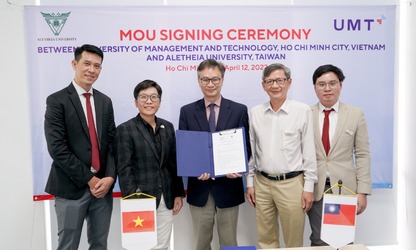 Ngày 12/4/2022, tại số 11 đường 35CL, Phường Cát Lái, TP. Thủ Đức, TP.HCM, Trường Đại học Quản lý và Công nghệ TP.HCM (UMT) đã chính thức ký kết hợp tác cùng Trường Đại học Aletheia (Đài Loan). Thông qua việc ký kết này, hai bên sẽ triển khai thực hiện các nội dung liên quan, mở ra triển vọng phát triển mới cho các em sinh viên và nhà trường.