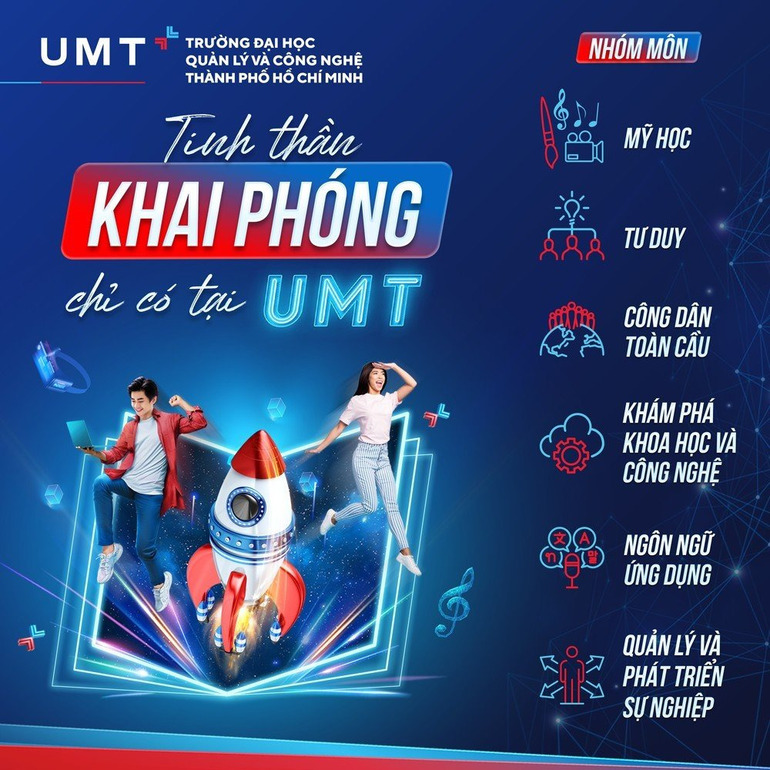 Đứng trước xu thế chung của thế giới và Việt Nam, Trường Đại học UMT với triết lý giáo dục khai phóng trang bị cho sinh viên đầy đủ công cụ để thích ứng với một tương lai đầy biến động. Triết lý giáo dục khai phóng tại UMT hướng đến việc truyền tải và phát triển một nền giáo dục toàn diện để KHAI mở tối đa nền tảng tri thức và giải PHÓNG tư duy khỏi những khuôn mẫu định sẵn.