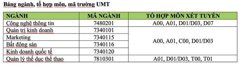 Trường Đại học Quản lý và Công nghệ TP.HCM (UMT) đã công bố điểm dự kiến nhận xét tuyển các phương thức cho tất cả các ngành đào tạo: