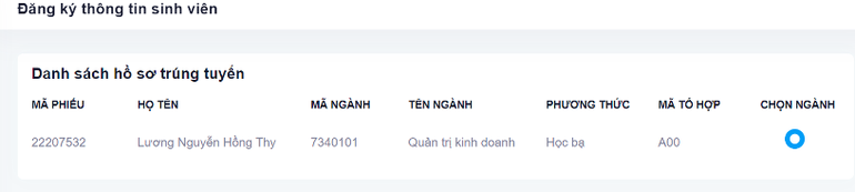 Bước 2: Tra cứu ngành trúng tuyển và chọn ngành nhập học