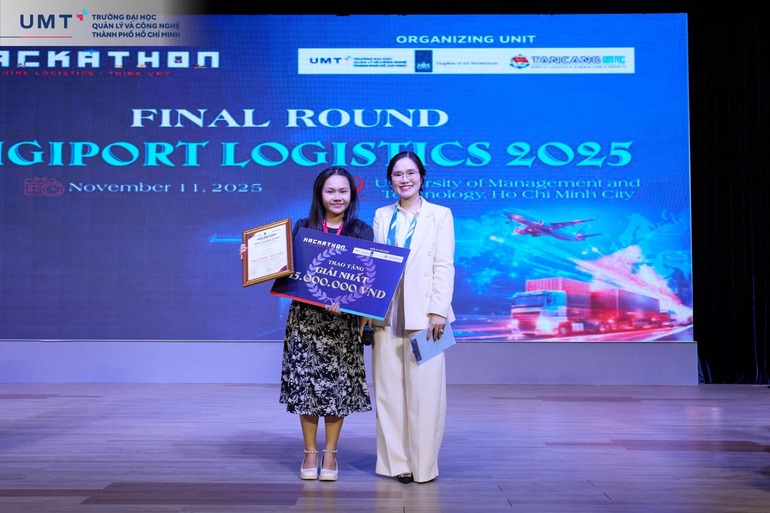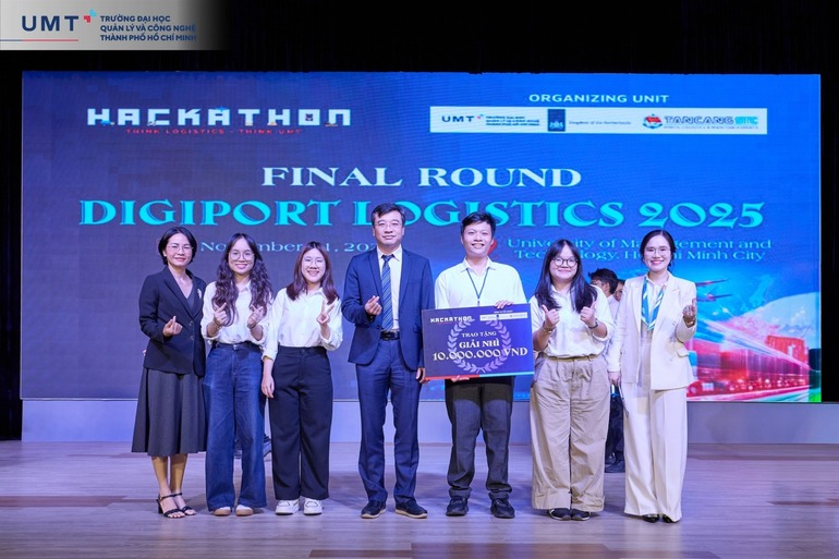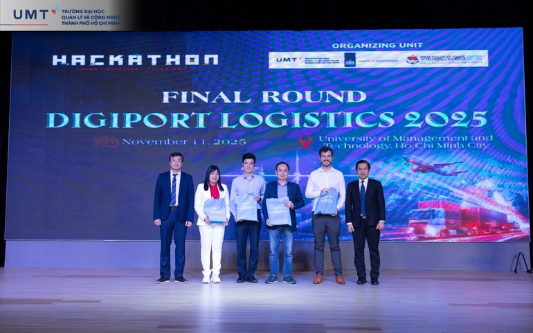 Ngày 11/11/2025, Lễ trao giải Chung kết cuộc thi Hackathon Digiport Logistics 2025 đã diễn ra sôi nổi tại Trường Đại học Quản lý và Công nghệ TP.HCM (UMT).