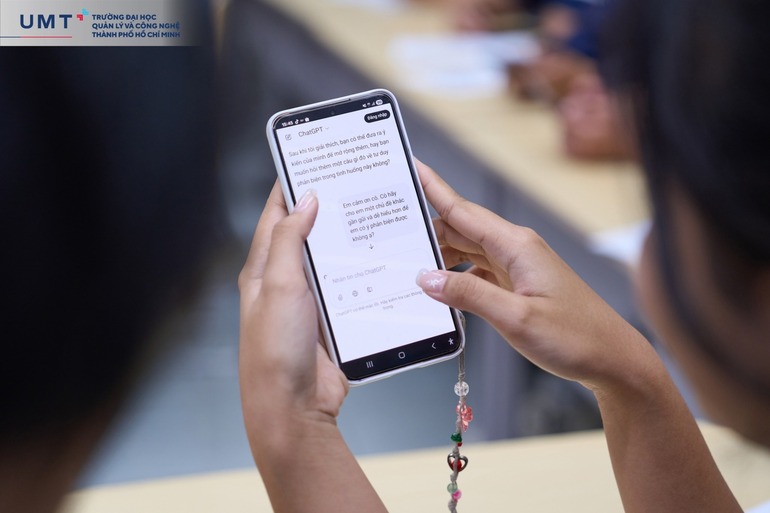 Sẽ ra sao nếu trong lớp học, một nhóm sinh viên dùng AI để đặt câu hỏi và một nhóm khác dùng AI để trả lời? Đây là thực tế đang tồn tại ở giảng đường đại học và là vấn đề mở đầu đầy thú vị tại buổi Workshop “Sử dụng AI mà không mòn não” của ThS. Nguyễn Việt Hải - Phó Trưởng Bộ môn Giáo dục Khai phóng, Trung tâm ONE UMT.