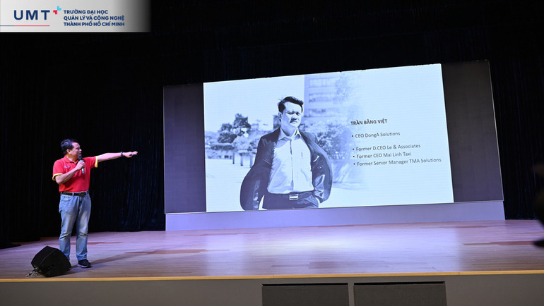 ThS. Trần Bằng Việt, người đang giữ vị trí CEO tại Dong A Solutions, mang đến nhiều câu chuyện thực tế và những bài học về phát triển bền vững. Với hơn 20 năm kinh nghiệm quản lý tại nhiều doanh nghiệp lớn như Phó Tổng Giám đốc điều hành của Le & Associates, CEO Mai Linh Taxi và Quản lý cấp cao tại TMA Solutions… Với hơn hai thập kỷ kinh nghiệm trong các lĩnh vực quản lý doanh nghiệp, ông Việt đã truyền cảm hứng cho sinh viên thông qua các bài học thực tiễn về cách có thể tham gia và đóng góp cho SDG.