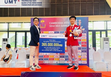 UMT TRAO HỌC BỔNG GLOBAL (365 TRIỆU ĐỒNG) ĐẾN VẬN ĐỘNG VIÊN ĐẠT HUY CHƯƠNG BẠC MÔN CỜ ỐC TẠI SEA GAMES 32