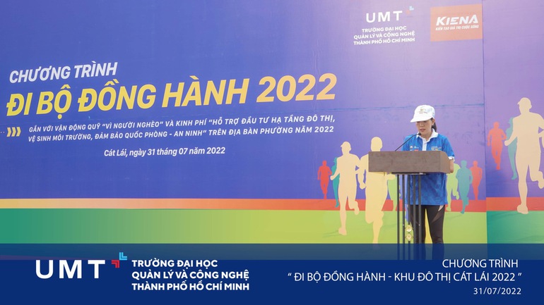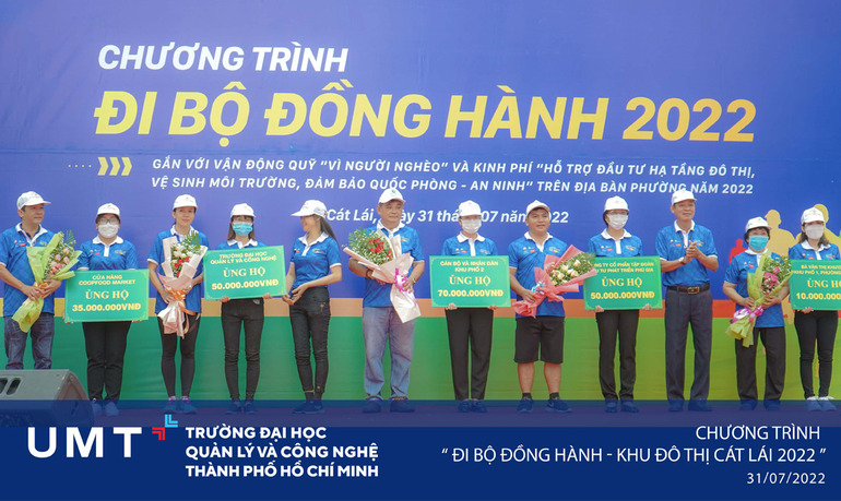 Chương trình “Đi bộ đồng hành - Khu đô thị Cát Lái 2022” đã diễn ra vào sáng Chủ nhật, ngày 31/7/2020, tại Khu dân cư Kiến Á (Chung cư Citisoho, Chung cư Citiesto) với lộ trình 3 km và có hơn 1.500 tham gia, trong đó có sự góp mặt đông đảo của GVNV Trường Đại học UMT. UMT hy vọng đây là môi trường sống tốt với nhiều trải nghiệm ý nghĩa dành cho các bạn sinh viên UMT trong thời gian tới.