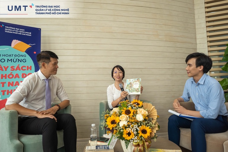 Buổi tọa đàm với sự tham gia của 2 diễn giả rất quen thuộc với sinh viên UMT: ThS. Dương Trần Minh Đoàn - Chuyên gia Hướng nghiệp và ThS. Lê Thị Hoàng Hảo - Giảng viên Bộ môn Tiếng Anh UMT. Qua câu chuyện về một nhà văn tìm thấy cuốn sách rất quý của mình đã tặng cho một người bạn tại một tiệm sách cũ, 2 vị diễn giả đã cùng mọi người cho thấy nhiều khía cạnh khác nhau rất nhân văn khi ứng xử với sách.
