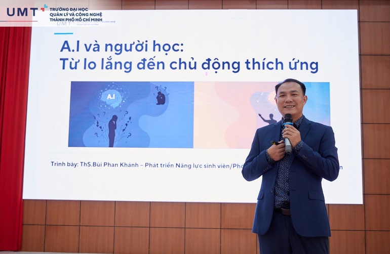 ThS. Bùi Phan Khánh nhấn mạnh: “UMT không chỉ trang bị kỹ năng, mà còn đồng hành cùng người học trên hành trình hiểu mình, chọn đúng và vững vàng thích ứng trong kỷ nguyên AI”.