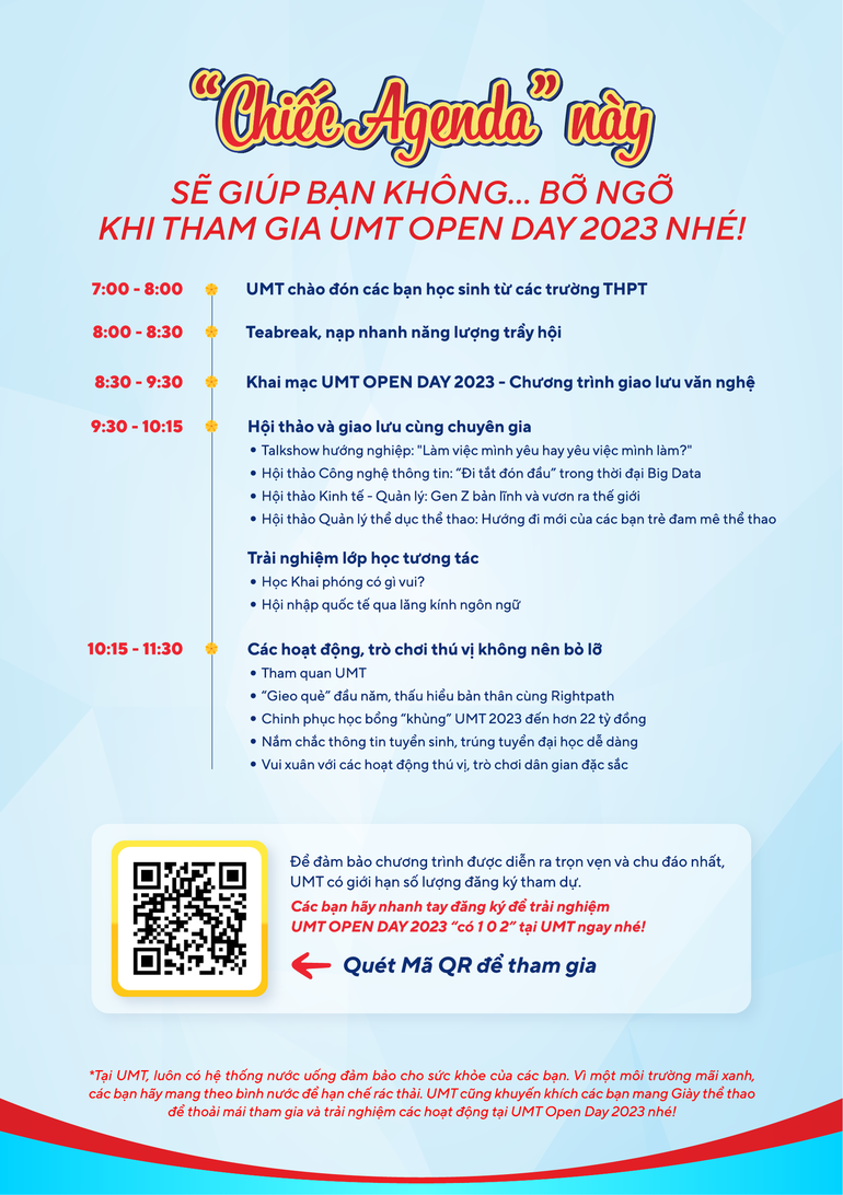 Cùng “điểm danh” những điều các bạn không nên bỏ lỡ khi tham gia Ngày hội “New Journey, New Success 2023” tại UMT nhé!